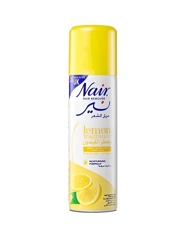 Nair Hair Removal Spray (Lemon Fragrance) – quick, painless hair removal for men & women. Leaves skin smooth, soft & hair-free in minutes. Perfect for chest, legs & arms.